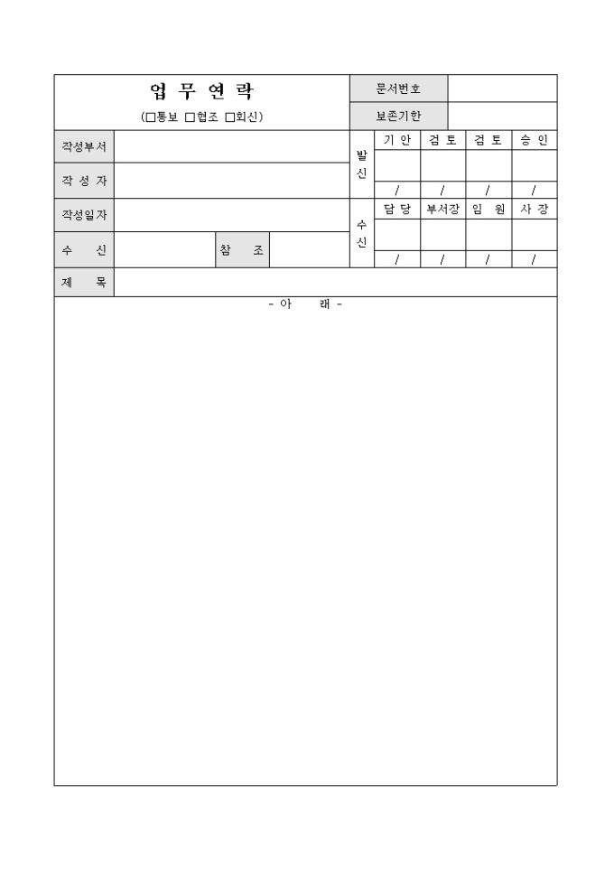 업무연락에 사용되는 기안서 양식입니다.