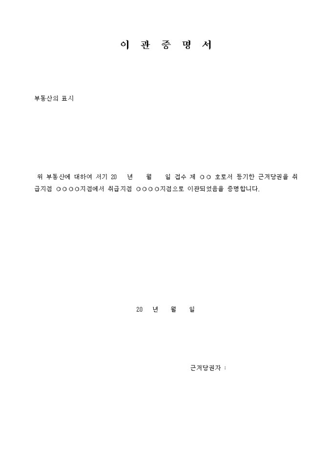 이관증명서(부동산)