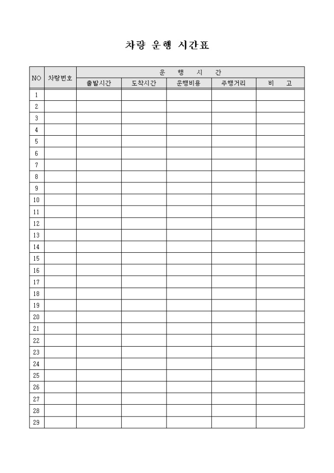 차량 운행 시간표 양식입니다.