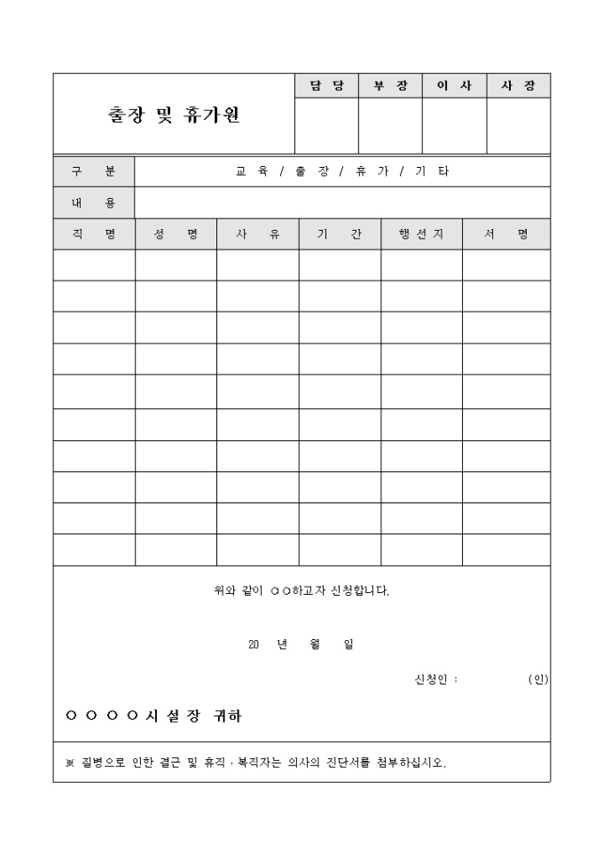 9,000원/월교유, 출장, 휴가시 사요와 기간등을 기록하여 제출할때 사용되는 문서입니다.