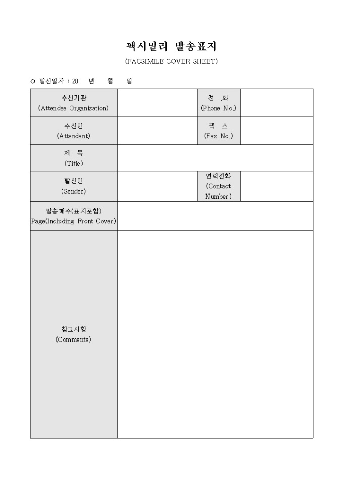 9,000원/월팩시밀리 발송표지입니다. 수신기관,수신인, 발신인, 참고사항등으로 구성되어 있습니다