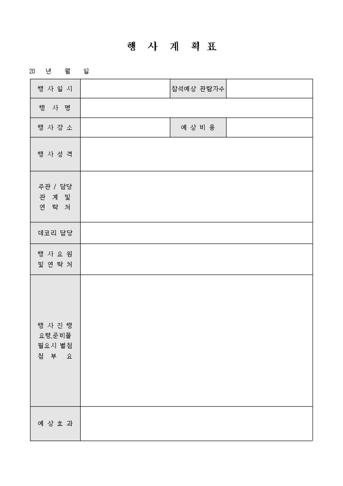 9,000원/월일반적으로 사용되는 행사계획표 입니다.