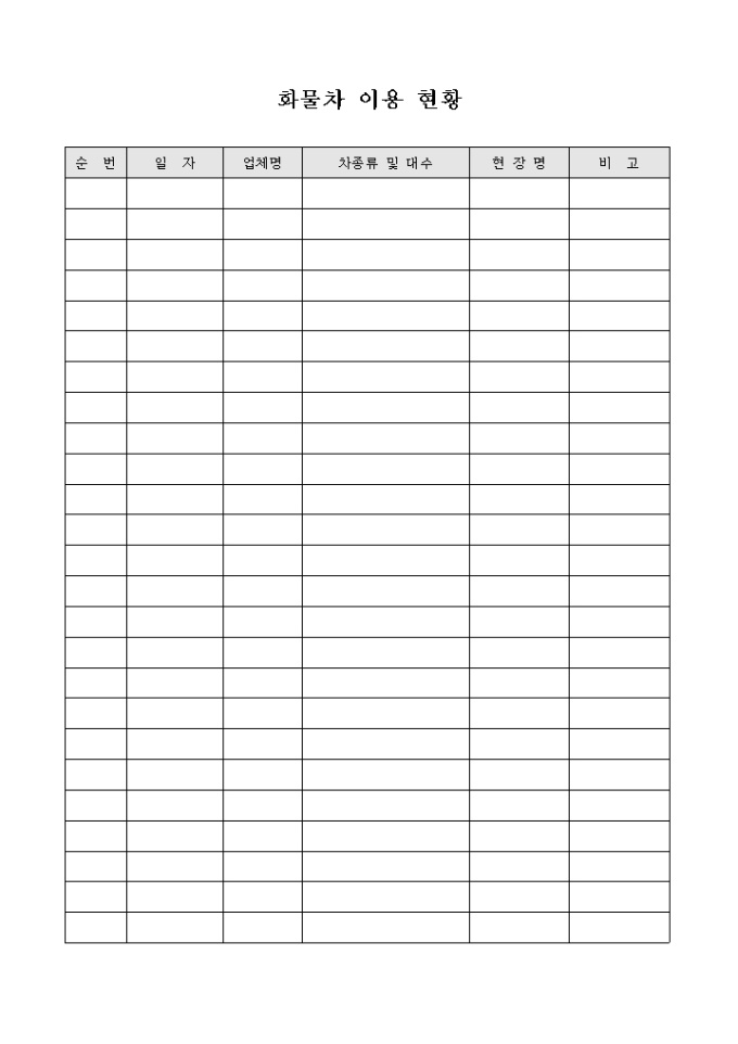 화물차이용현황입니다. 화물차이용 날짜와 업체, 현장명등의 기록이 가능합니다.