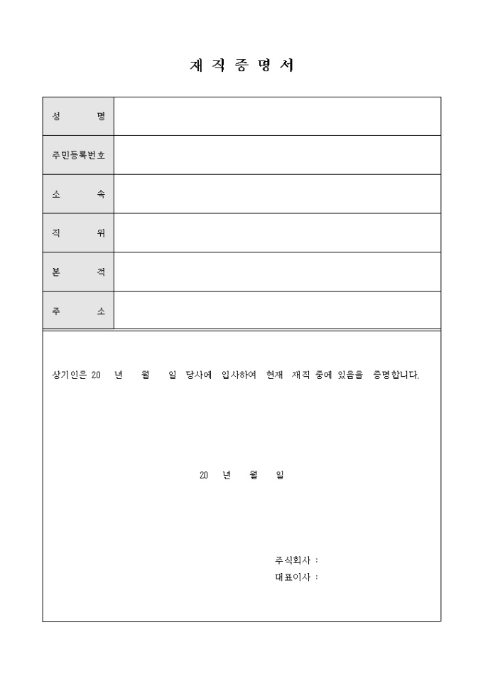 9,000원/월해당 회사에서 재직하고 있음을 증명해주는 재직증명서 양식입니다.