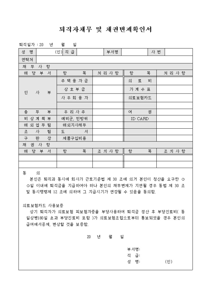 9,000원/월퇴직자의 채무와 채권변제를 확인하기 위해 사용되는 확인서입니다.