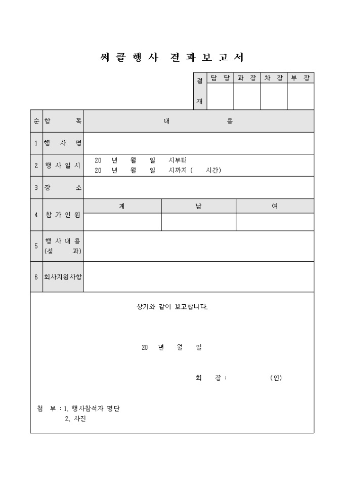 9,000원/월서클행사의 내용과 성과등을 기록하기 위한 결과 보고서 입니다.