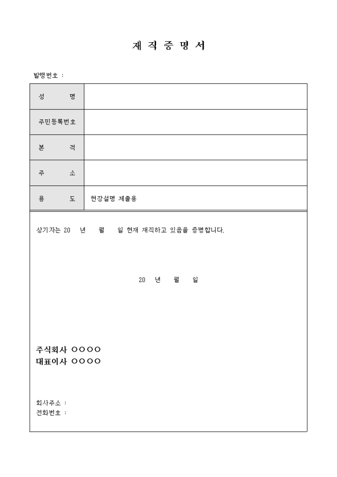재직증명서(현장설명제출용)