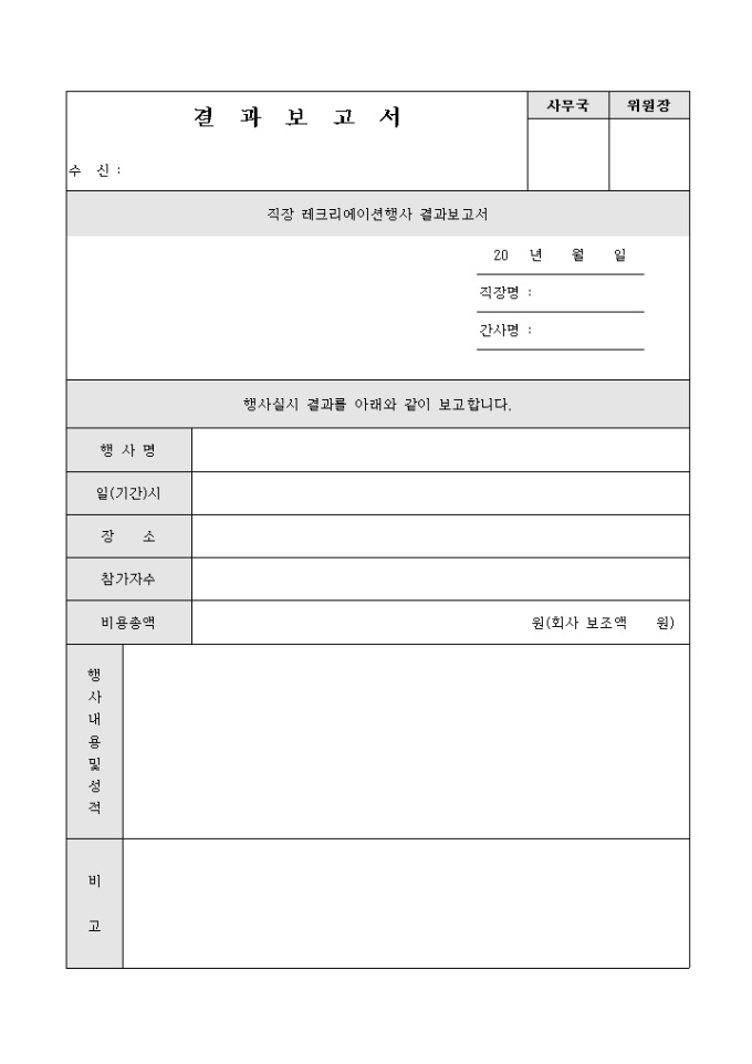 9,000원/월직장 레크리에이션 행사 결과보고서 입니다.