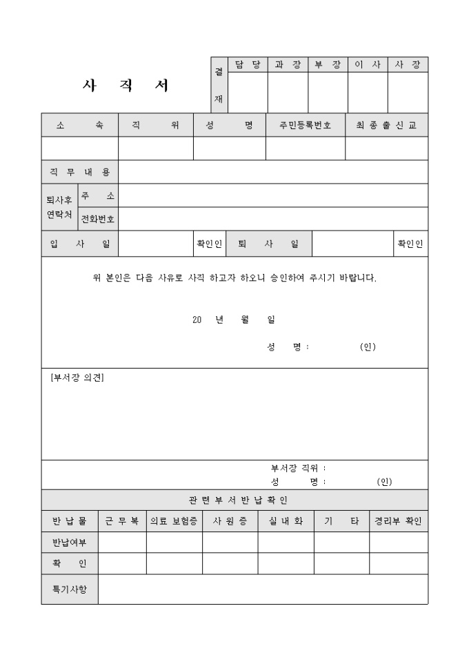사직서(물품반납확인)