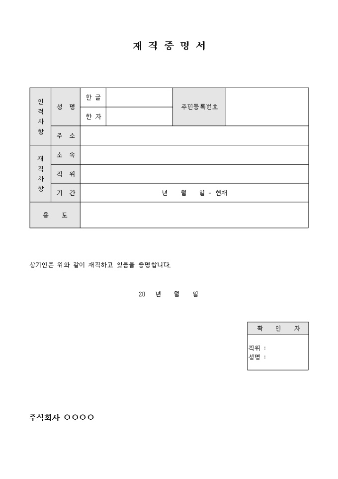 9,000원/월회사에 재직하고 있음을 증명하기 위한 재직증명서 양식입니다.