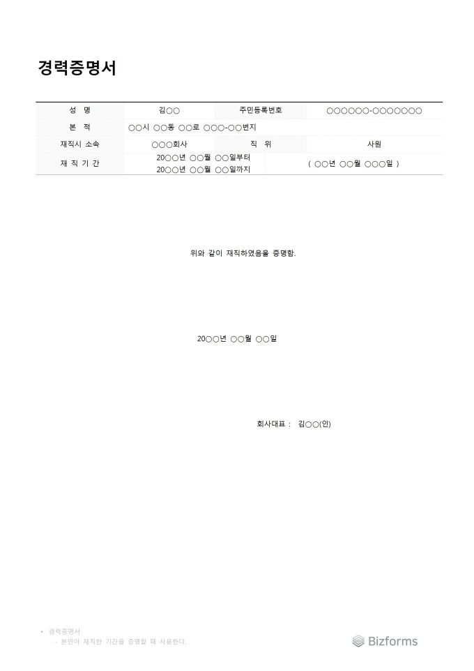 9,000원/월재직시소속, 직위, 재직기간등을 간단하게 작성할 수 있는 경력증명서입니다