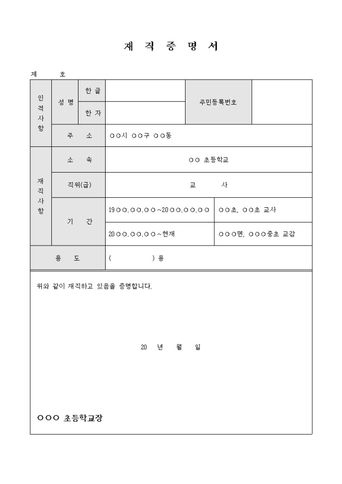 9,000원/월교사들이 사용 할 수 있는 재직증명서 양식입니다. 인적사항, 재직사항, 용도 등의 항목으로 구성되어 있습니다.