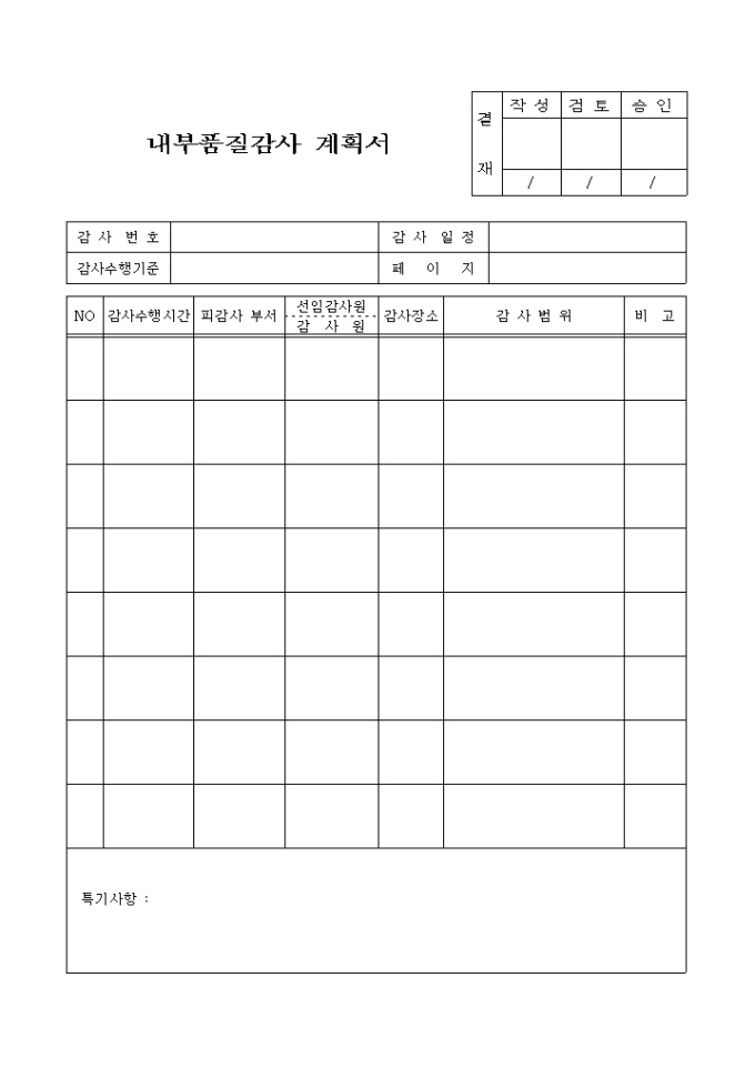 9,000원/월내부품질감사계획서 입니다.
