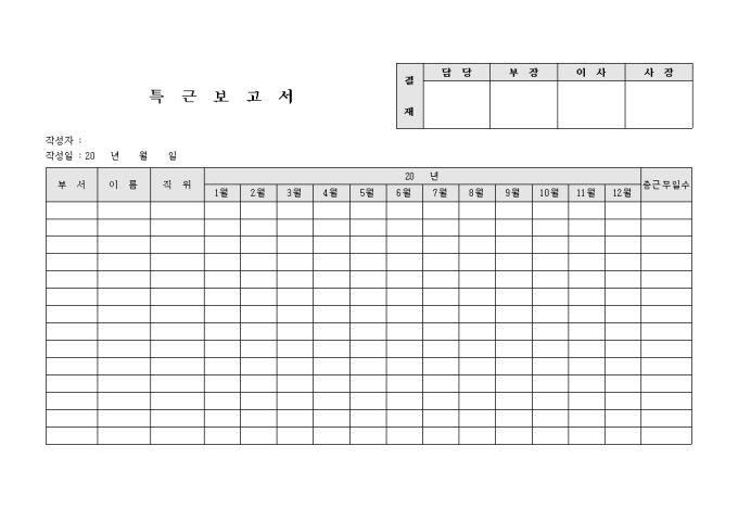 특근보고서(월별일수)