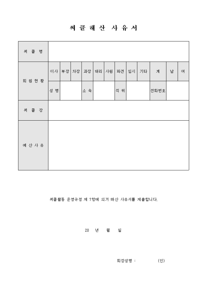 서클의 해산시 그 이유에 대해서 작성하는 사유서 양식입니다.