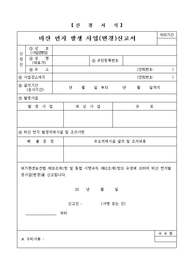 비산 먼지 발생 사업(변경)신고서 입니다.