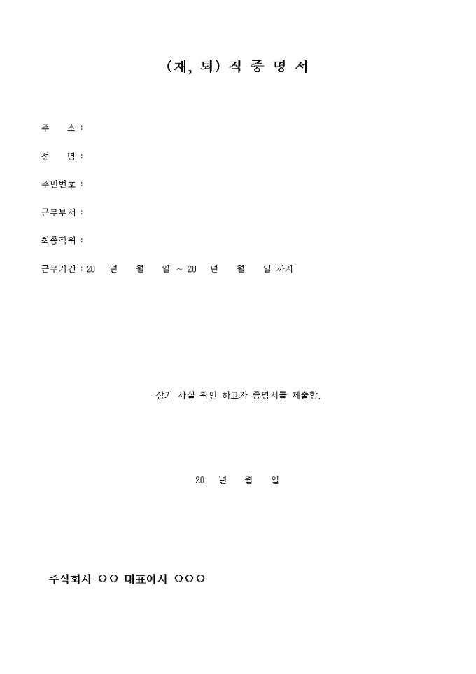 9,000원/월재직과 퇴직을 증명하기 위해 기록하는 증명서 입니다.