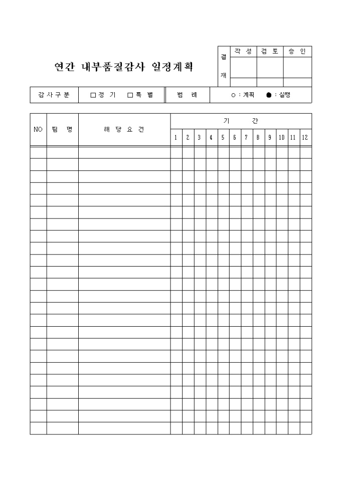 연간 내부 품질 감사 일정 계획서