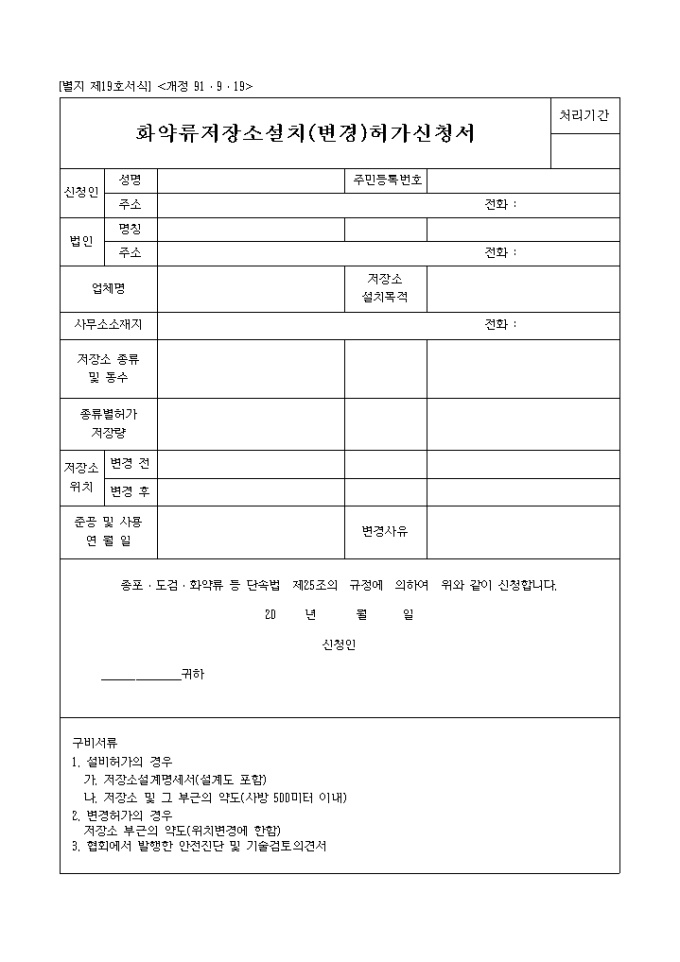 화약류저장소설치,변경허가신청서 입니다.