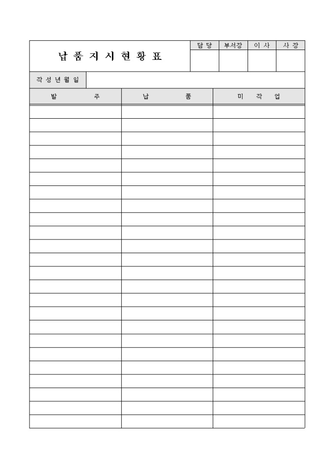 9,000원/월발주받은 물품의 납품 및 미작업 수량의 현황을 파악할 수 있게 만든 서식입니다.