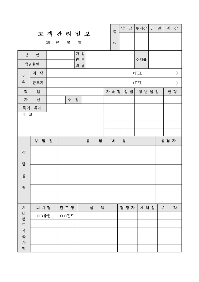 9,000원/월보험업에서 사용하는 고객관리일보의 형태로 고객의 인적사항 및 방문면담기록등을 기입할 수 있습니다.