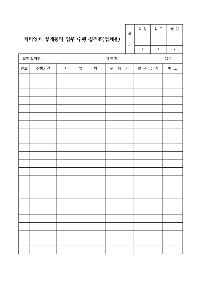 협력업체설계용역업무수행실적표,업체용 입니다.