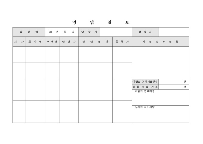 9,000원/월가로로 되어있으며 시간별로 사업장에 방문하여 만난 사람을 기입할 수 있으며 사내업무내용을 적는 란이 포함되어 있는 서식입니다.