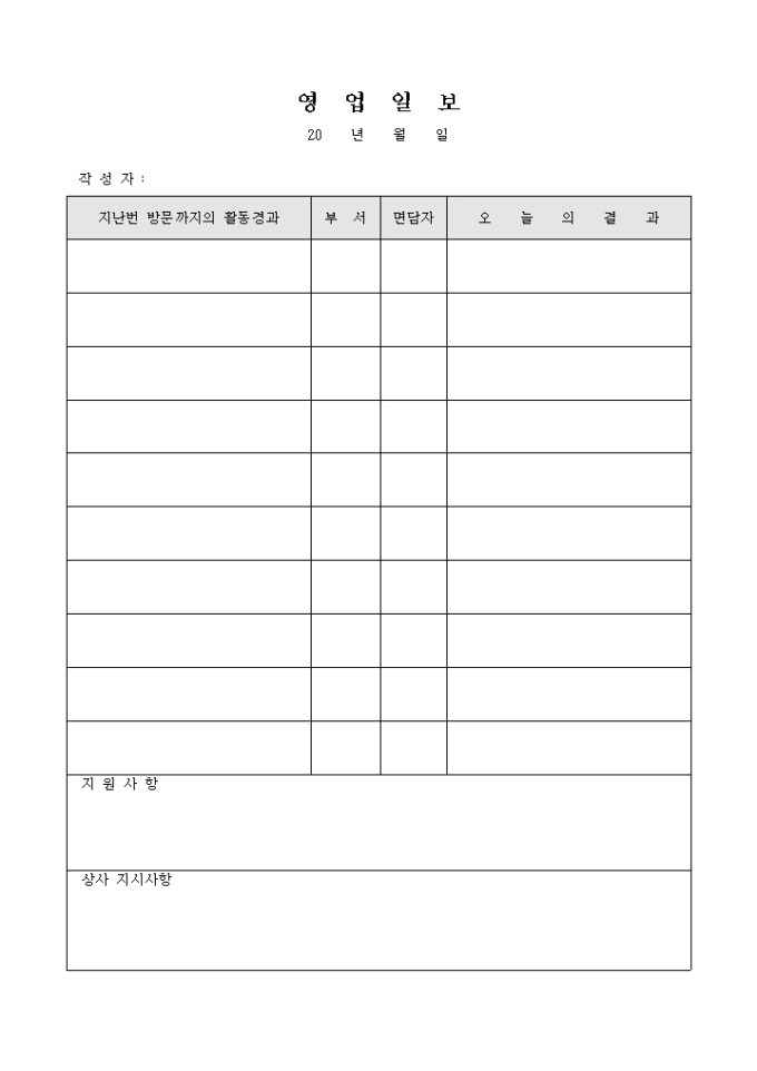 9,000원/월부서의 방문자 면담전까지의 경과를 기입할 수 있게 하고 당일 면담후 그 결과를 기입할 수 있도록 만든 서식입니다.