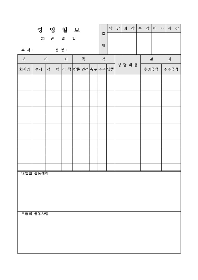 방문목적을 구체화 하여 상세한 방문목적을 기입할 수 있는 영업일지입니다.
