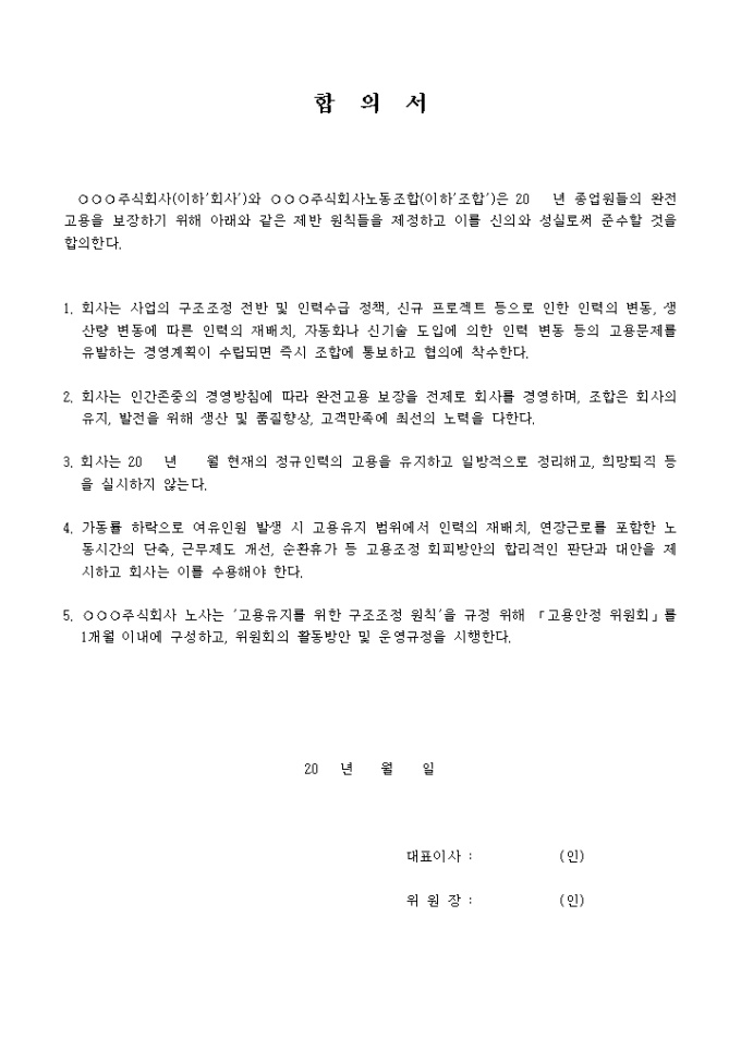 9,000원/월노동조합에서 사용되는 합의서 입니다. 규칙들을 정하고 준수하겠다는 내용의 합의서 입니다.