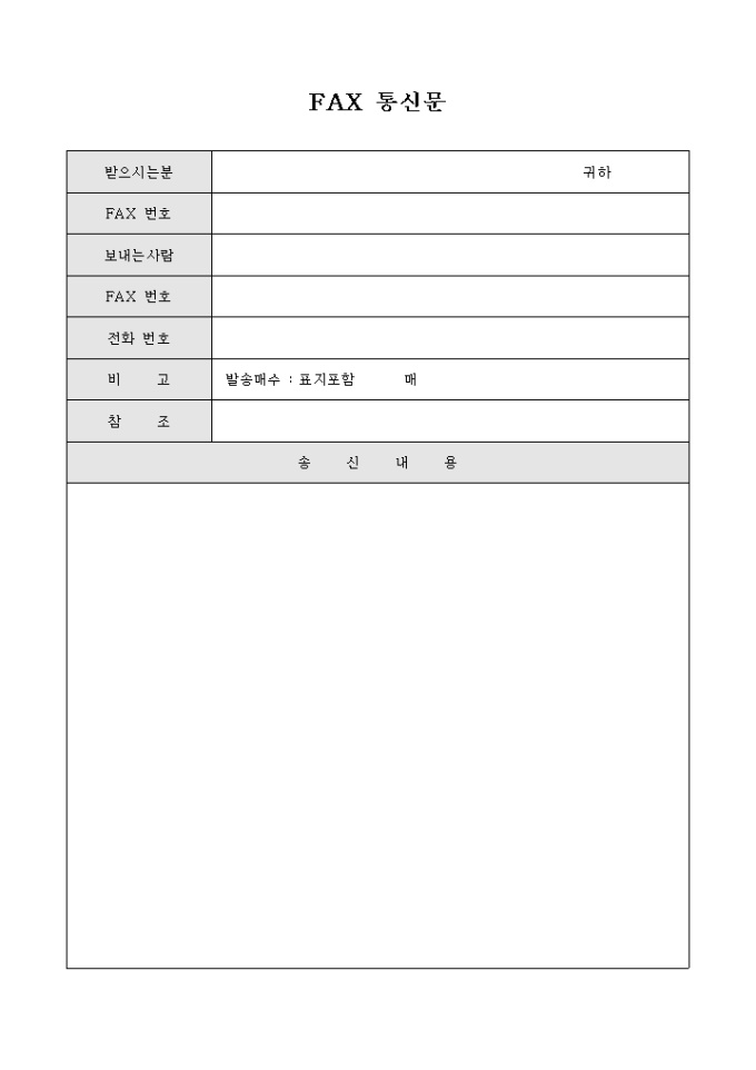 9,000원/월수신인, 발신인, 전화번호, 비고, 참조, 송신내용의 항목으로 구성된 FAX 통신문입니다.