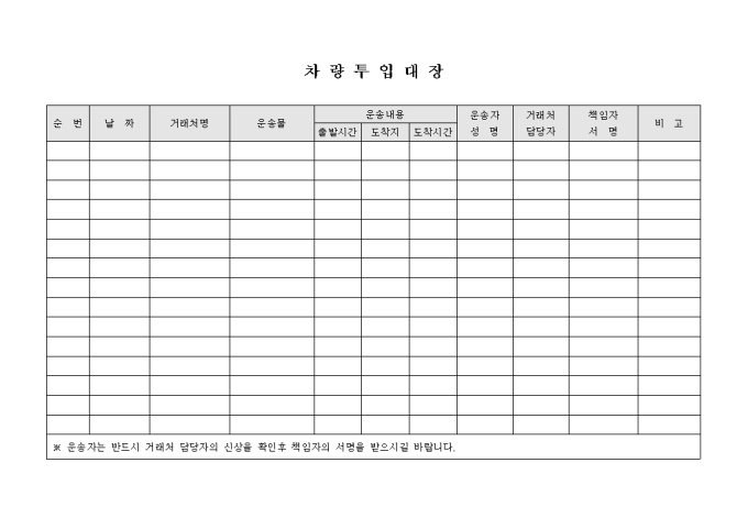 차량의 투입에 관련된 내용을 기록하는 문서입니다.