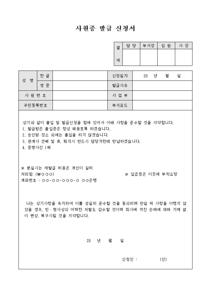 사원증 발급신청서