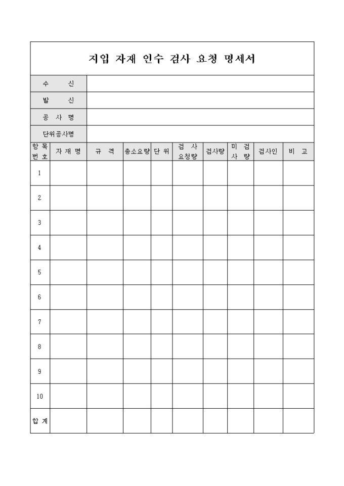 검사요청명세서(지입자재 인수)