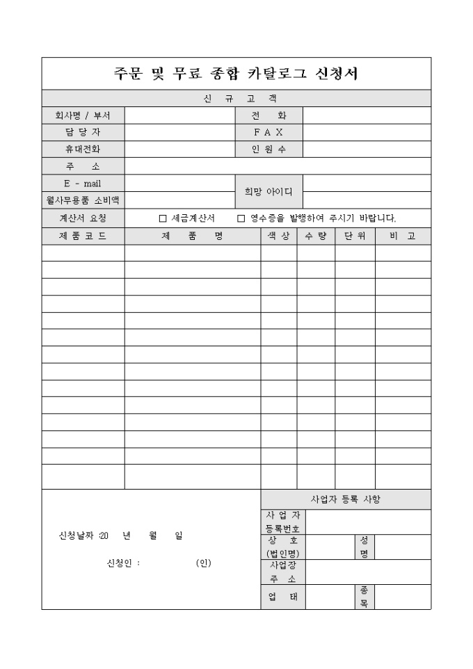카다록신청서(주문, 무료종합)