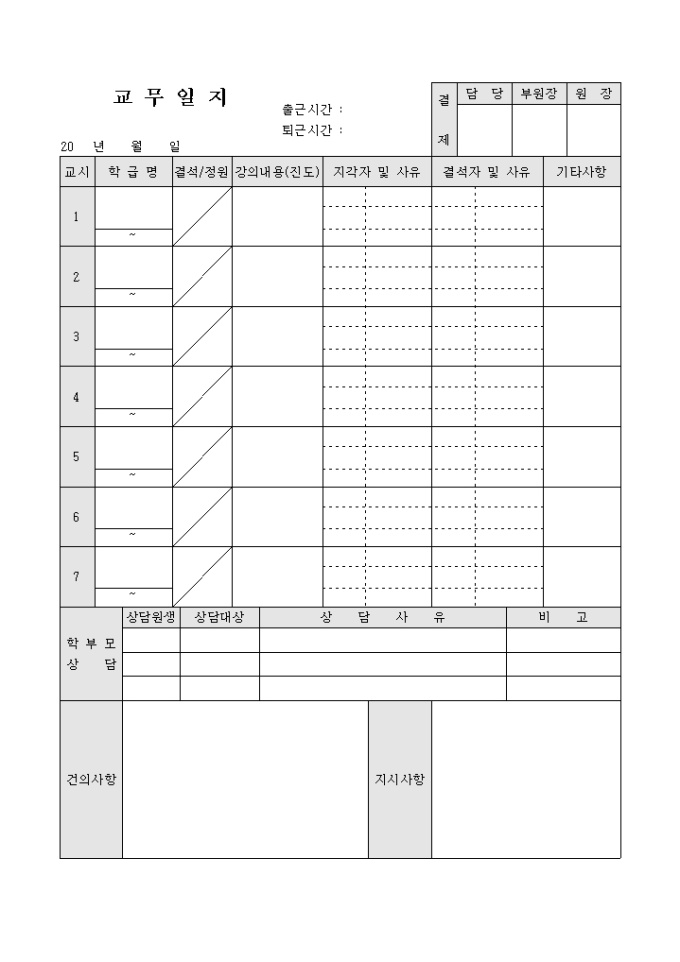 9,000원/월입시학원에서 사용 할수 있는 교무일지입니다.