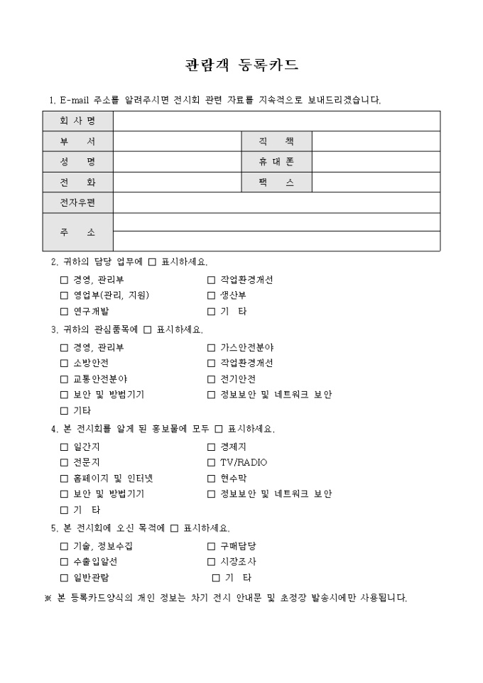 관람객등록카드(기업전시회)