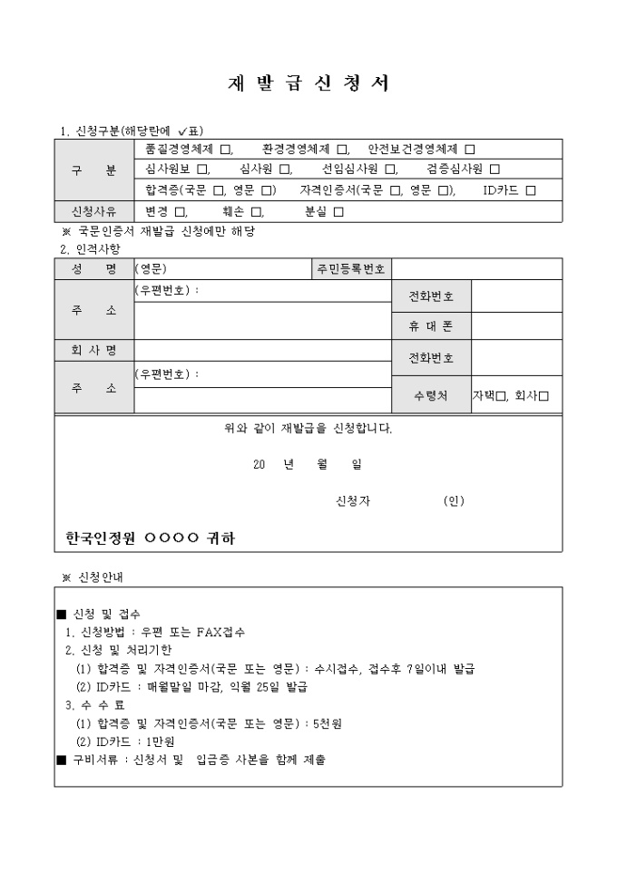 재발급신청서(합격증,자격인증서,ID카드 등)