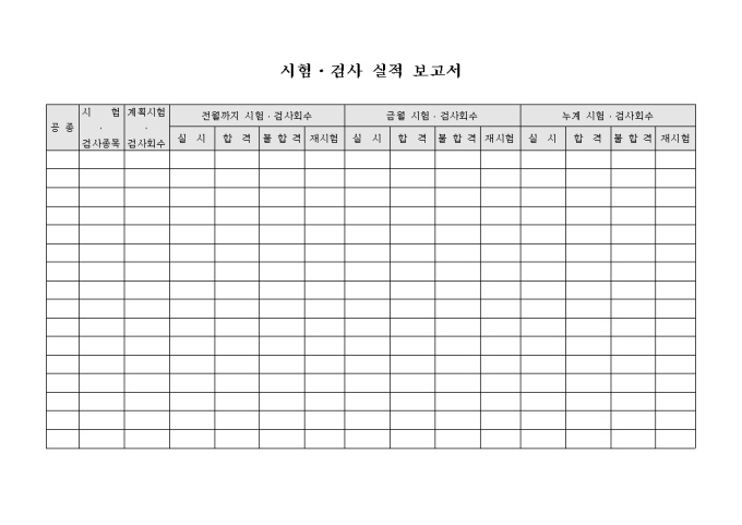 시험,검사실적보고서로 전월, 금월, 누계 시험.검사실적을 기록할 수 있습니다.