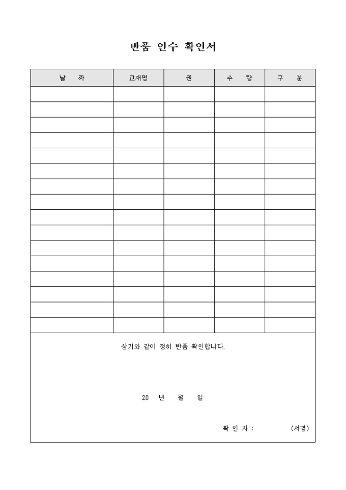 9,000원/월반품인수 확인서 입니다. 반품에 관련된 내용을 기록하는데 사용합니다.