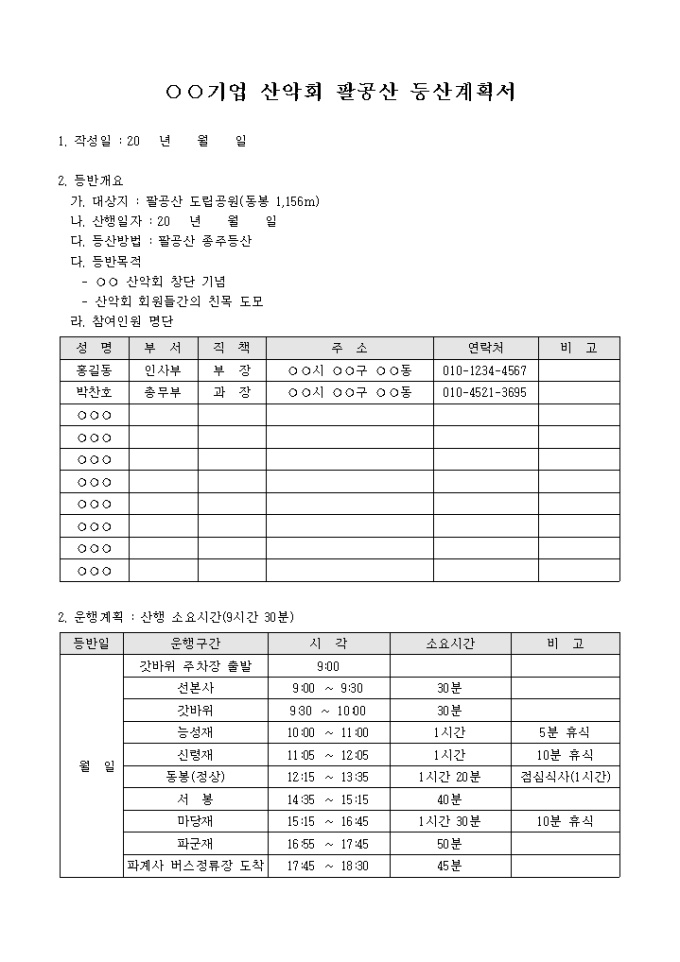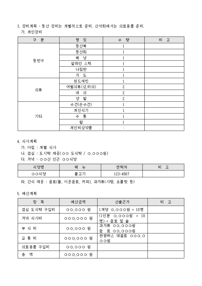 기업산악회 등산계획서