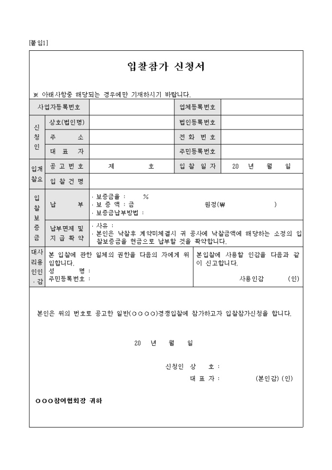 입찰참가자 등록신청서 작성방법
