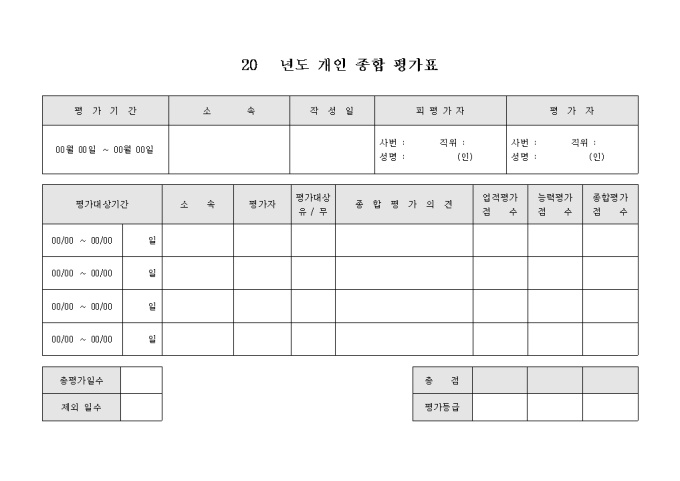 9,000원/월개인종합 평가표 입니다. 능력을 평가하고자 할 때 사용되는 평가 표입니다.