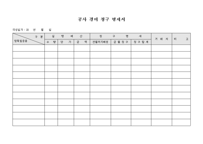 공사 경비 청구 명세서