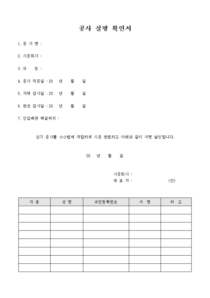 9,000원/월공사 실명 확인서 입니다. 공사시설 시공에 필요한 인원을 기록하고 서명할때 사용됩니다.