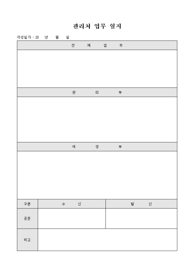 9,000원/월관리처 업무일지 입니다. 전체 업무, 관리부, 재정부 업무에 관한 내용을 기록할수 있습니다.