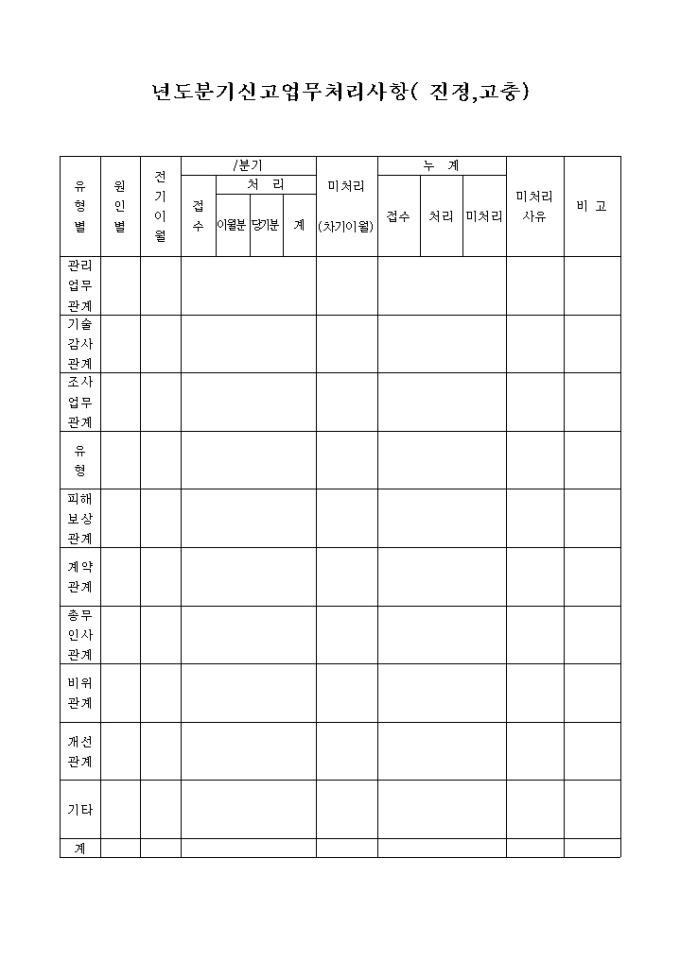 분기신고 업무 처리 상태를 기재하는 양식입니다.
