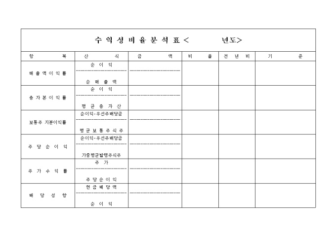 수익성비율분석표, 년도