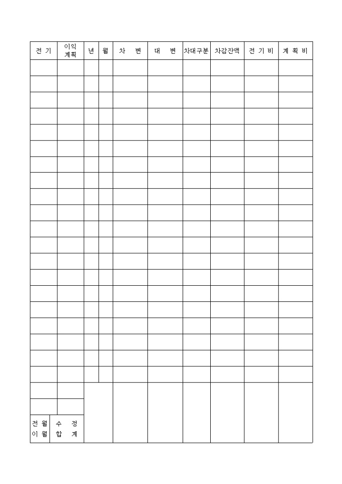 한 달 동안의 회계를 나타낸 월계표의 뒷면입니다.
