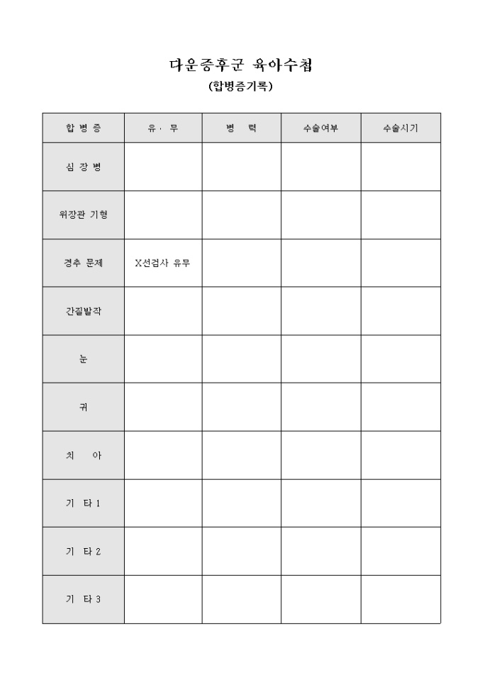 9,000원/월다운증후군을 가진 육아의 성장 과정을 관리하기 위해 만들어졌으며 합병증 사항을 기재하여 확인할 수 있게끔 제작된 서식입니다.
